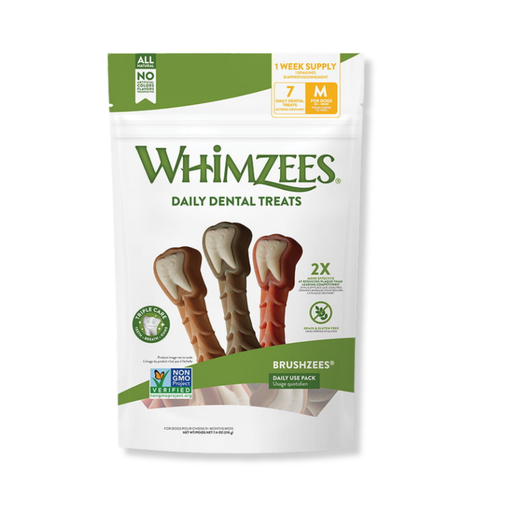Keep your dog’s smile healthy and their breath fresh with Whimzees Brushzees Natural Dental Treats. A smarter, cleaner, and more enjoyable way to care for your dog’s teeth every day.