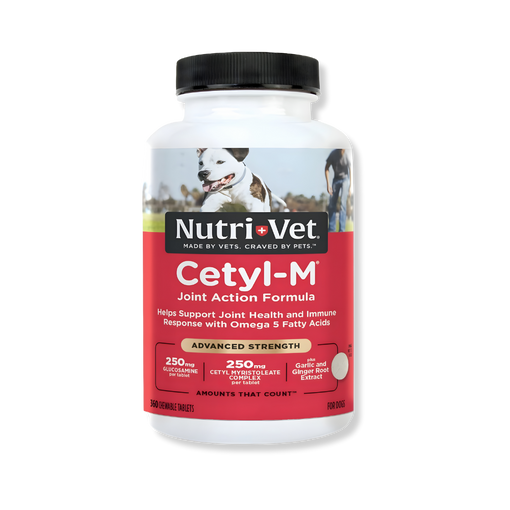 Powered by Omega-5 fatty acids, Nutri-Vet's Advanced Cetyl-M Joint Action Chewable Tablets support healthy joint mobility and immune response. Made in the USA with globally sourced ingredients, Cetyl-M helps support long-term health.