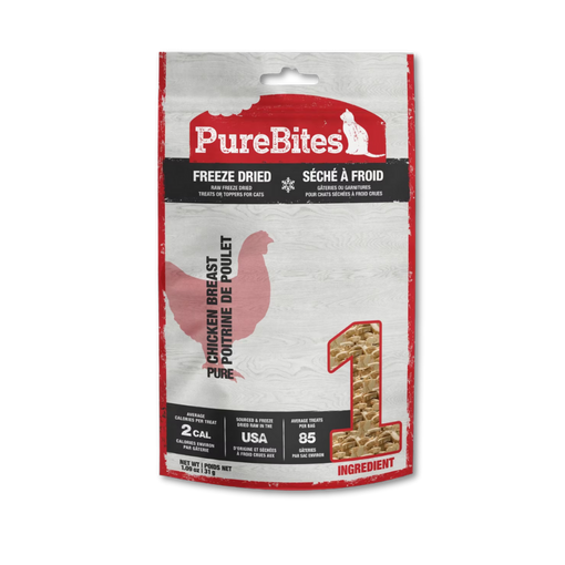 Go ahead, turn the bag around and look at our ingredients. PureBites® are made with only 1 ingredient; 100% Pure USA Sourced and Made Human Grade Chicken Breast. Cats love the taste of PureBites® because our treats are freeze dried RAW to lock in the aroma, texture and freshness they crave. Cat parents love PureBites® because our treats are 100% pure and rich in nutrients for a happy and healthy life.