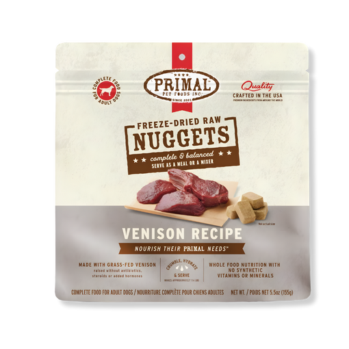 Give your dog a raw, high-protein diet with Primal Pet Foods Freeze-Dried Raw Venison Nuggets—crafted for optimal health, digestion, and vitality.