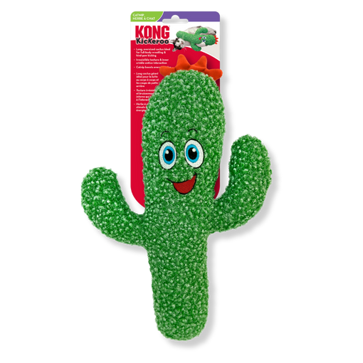 KONG Kickeroo Cactus Cat Toy is a plush cat toy designed to encourage active play through kicking, wrestling, and grabbing. Shaped like a cactus and sized for full-body interaction, this toy allows cats to hold, kick, and engage with it during playtime.