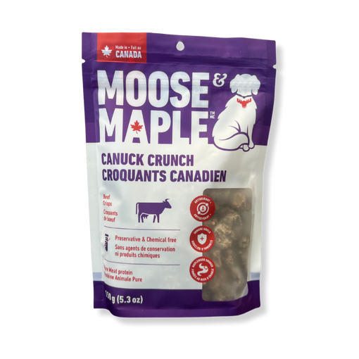 Moose and Maple Canuck Crunch Beef Dog Treats are a crave-worthy, protein-packed reward made for dogs who love a satisfying crunch. Crafted with real beef as the star ingredient, these treats deliver bold flavour and wholesome nutrition in every bite.