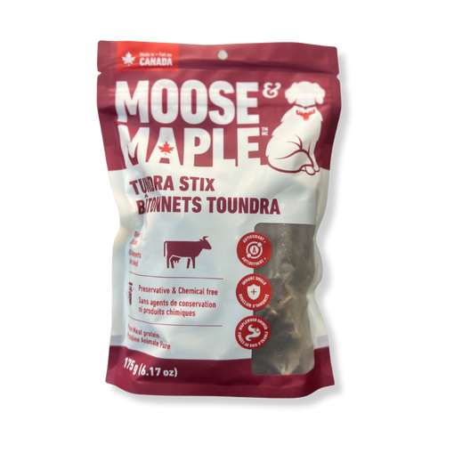 Moose and Maple Tundra Sticks Beef Dog Treats are a protein-packed, naturally delicious reward made for dogs who crave real meat and simple ingredients. Crafted with Canadian-sourced beef, these chewy sticks deliver irresistible flavour while supporting clean, species-appropriate snacking.