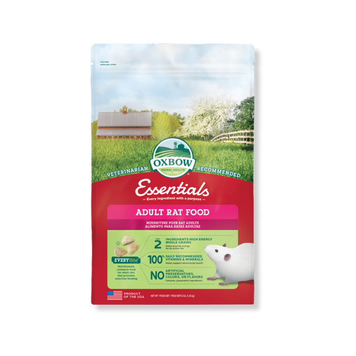 Oxbow’s Essentials - Adult Food is formulated to meet the specific nutritional needs of adult rats. This complete and balanced rat food is low in fat and includes exact levels of key nutrients to support daily function and performance. The uniformity of Essentials - Adult Rat prevents the selective feeding commonly associated with mixes and seed-based diets.