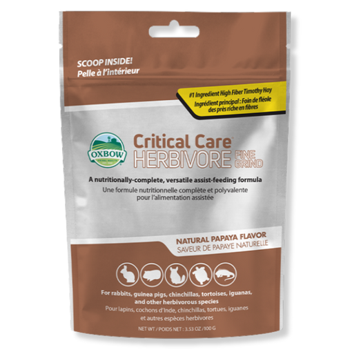 When every bite matters, Oxbow Critical Care Fine Grind Papaya provides targeted support for small herbivores with unique feeding challenges. Designed for pets requiring feeding via a smaller syringe, feeding tube, or recovery protocol, this finely milled, high-fibre formula is ideal for rabbits, guinea pigs, chinchillas, and other herbivores during illness or post-surgery care.