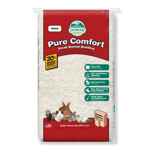 Give your small pet the comfort they deserve with OXBOW Pure Comfort White Bedding, a premium mix of ultra-soft, 100% pure never-printed paper materials. Designed to create a clean, cozy, and hygienic habitat, this bedding offers the perfect balance of softness, odor control, and moisture absorption - ideal for rabbits, guinea pigs, hamsters, rats, gerbils, mice, and other small pets.