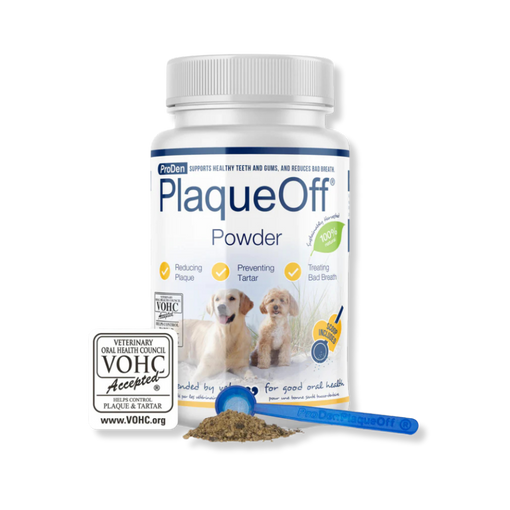 Ideal for dogs of all breeds and sizes, ProDen PlaqueOff Powder is free from artificial additives, preservatives, and gluten, making it a safe and natural choice for supporting your pet’s dental hygiene.