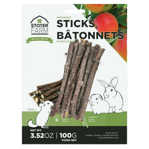 Satisfy your small pet’s natural chewing instincts with Stoter Farm Applewood Sticks—100% natural hardwood sticks harvested from untreated Canadian apple trees. These aromatic, nutrient-rich chews support healthy teeth and offer a deliciously satisfying texture that rabbits, guinea pigs, hamsters, and other small herbivores can’t resist.