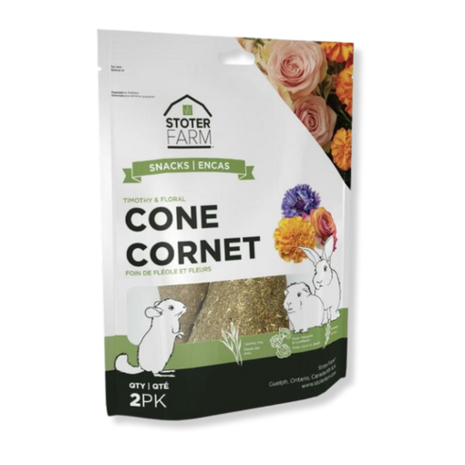 Treat your small pet to a floral feast with Stoter Farm Timothy and Floral Cones. These 100% edible cones are made from hand-pressed Western timothy hay and adorned with pet-safe dried flowers like calendula and rose, making them as beautiful as they are beneficial.