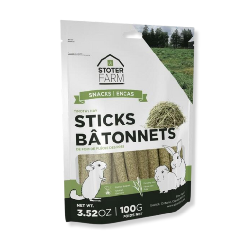 Give your small pet the gift of healthy chewing with Stoter Farm Timothy Hay Sticks—a natural, hand-formed treat made from nothing but high-fibre, Canadian-grown timothy hay. These crunchy sticks are perfect for satisfying your pet’s need to chew while promoting dental health, supporting digestion, and adding boredom-busting enrichment to their daily routine.