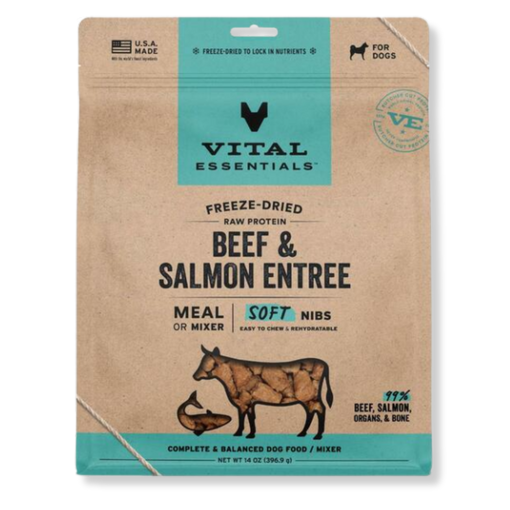 Vital Essentials Freeze-Dried Raw Beef and Salmon Entrée for Dogs - Soft Nibs - 14 oz